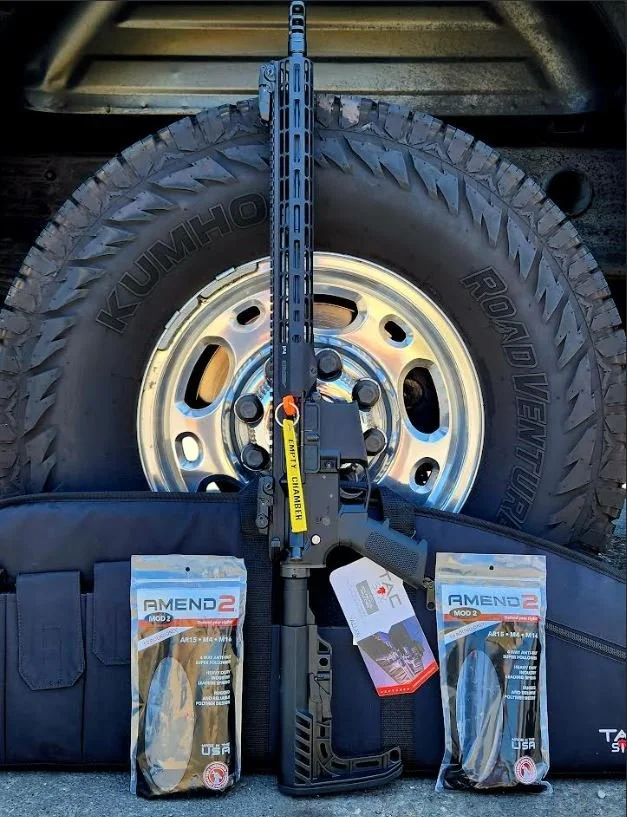 Aero Precision AR 15 rifle, with the Juggernaut CA compliant AR mod kit. 16” barrel, MAGPUL iron sites, Spike’s R2 muzzle brake, Mercury Precision BCG, Amend 2 - 10 rd. magazines (2), and (1) TAC rifle soft case.
